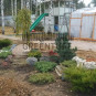 Разработка ландшафтного эскизного проекта озеленения и благоустройства территории. Выполнение работ по монтажу системы автоматического полива, устройство тропинок, посадка декоративных деревьев и кустарников, укладка натурального камня и подпорных стенок. Устройство цветников, посев семян газона и укладку рулонного газона перенесли на 2016 год.