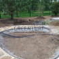 В ходе работ по благоустройству данного объекта при непосредственном участии заказчика были установлены отметки по нивелиру. С объекта было вывезено вручную более 100 м3 глинистой почвы. Новый плодородный грунт, включая песчаную подушку, был завезен, распланирован и послойно утрамбован вручную. Общий объем использованных грунтов составил более 250 м3. Далее была сделана финишная планировка под настил рулонного газона. На видовых местах участка финишная планировка переделывалась неоднократно, так как заказчик очень серьезно подошел к планировке, осматривая свой участок с разных сторон и высот.